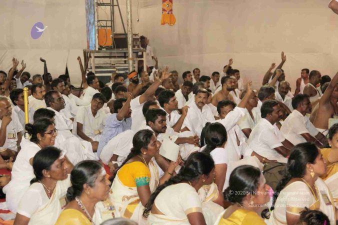 I welcome all of you with My love and respects. I welcome all the Devotees, Disciples, Sarvajna Peeta Yajamans, Nithya Satsangis, Sri Mahants, Mahants, Thanedar, Kothari, everyone, sitting with us all over the world, at this time through Nithyananda TV, Facebook Live, YouTube Live, 2-way Video Conferencing having Nayana Deeksha. Cities sitting with us through 2-way Video Conferencing having Nayana Deeksha, long list. So, I welcome all of you with My love and respects.