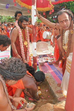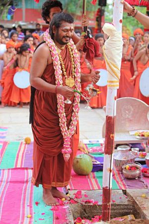 | + | File:20171001_Photo_154_1NCamH9AQsVlI6oCc2JoCjSMofAknG1zX.jpg | HDH Nithyananda Paramashivam performing the panda kaal ritual puja at the Nithyanandeshwara Sadashiva Temple to start preparations for the Nithyanandeshwara Brahmotsavam | ||