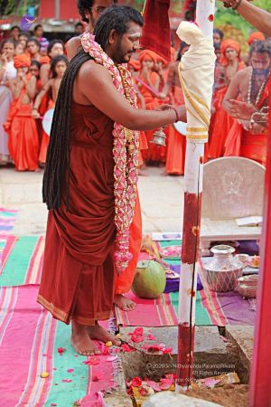 | + | File:20171001_Photo_152_17p5iURyh3rvY3TqbsGW4n9NxsnE8ReMu.jpg | HDH Nithyananda Paramashivam performing the panda kaal ritual puja at the Nithyanandeshwara Sadashiva Temple to start preparations for the Nithyanandeshwara Brahmotsavam | ||