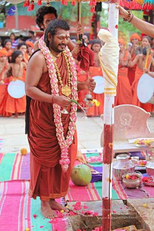 | + | File:20171001_Photo_102_10XKoHNpLS3zpK1RLgrty_uBOsZdN3MuA.jpg | Balasant performing puja for panda kaal ritual at the Nithyanandeshwara Sadashiva Temple for the Nithyanandeshwara Brahmotsavam at Adi Kailaasa, Bengaluru Aadheenam | ||