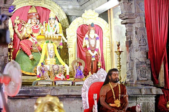 | + | File:20171001_Photo_153_1nIfs-4b4lp4ZTabDmLUjX0tAKcSig51-.jpg | HDH Nithyananda Paramashivam performing the panda kaal ritual puja at the Nithyanandeshwara Sadashiva Temple to start preparations for the Nithyanandeshwara Brahmotsavam | ||