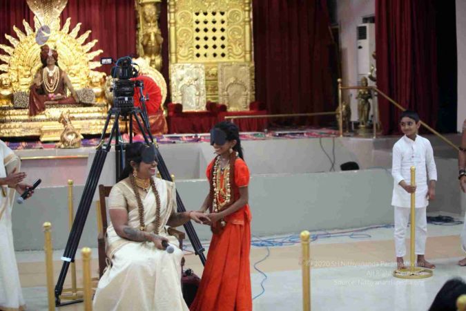 Inner Awakening Sadashivoham delegates enjoying the darshan of Nithyanandeshwara-Nithyanandeshwari Temple deities