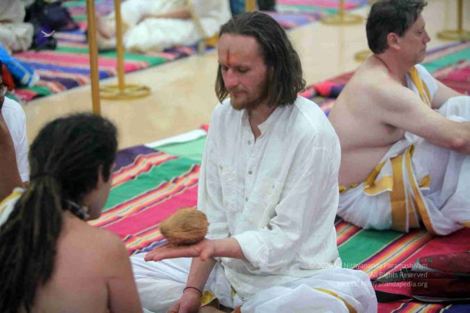 HDH Nithyananda Paramashivam sacred kalaasha water sprinkled before initiation