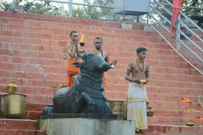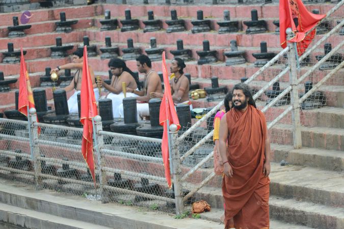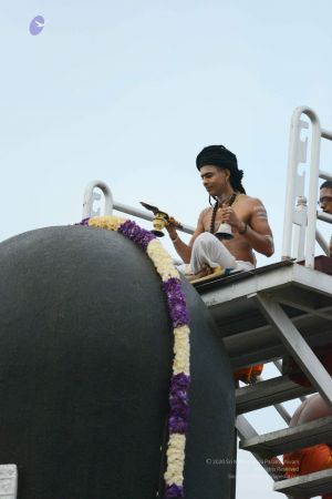 Today, the first day of Skanda Shasti Mahotsava. Today is the day, Subramanya was conceived, means He was expressed through the Third Eye of Sadāshiva, from the 5 faces – Sadyojaata, Vamadeva, Aghora, Tatpurusha, Ishana, from 5 faces’ Third Eyes, the energy is gathered and the 6th SPACE not face, SPACE - Adhomukha, means the unborn space, Avyakta. It is also called Ajomukha and Adhomukha both, which is not shown, which is not born. Ajo means which is not born. Adho means which is not shown. The 6th space of Sadashiva, Avyakta, which is Ajo and Adho, which is neither shown nor born, from that space the 6th spark happened and Adi Shakti held the whole thing together. The bio-memory of Adi Shakti, bio-energy of Sadāshiva, it was too powerful to hold it together, till the baby is delivered. So Ganga came to help. She acted as a spiritual incubator adding muscle-memory to this Garbha. So the bio-energy of Sadāshiva, bio-memory of AdiShakti and muscle-memory of Ganga put together, Completion of Sadāshiva is Subramanya.