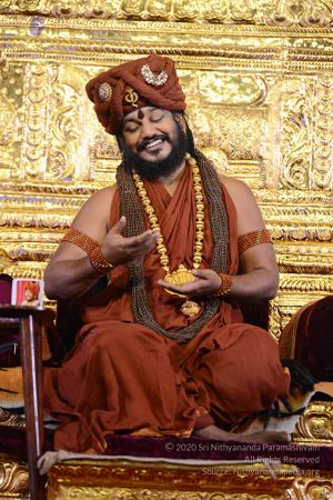 I welcome all you with My love and respects. I welcome all the Devotees, Disciples, Samajis, Satsanghis, Sri Mahants, Mahants, Thanedar, Kothari, sitting with us all over the world, through Nithyananda TV, Facebook Live, YouTube Live, two way Video Conferencing having Nayana Deeksha. Cities sitting with us through two way Video Conferencing…..long list so I welcome all of you with My love and respects.