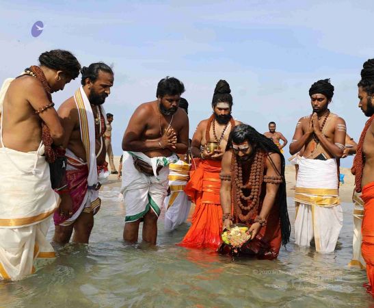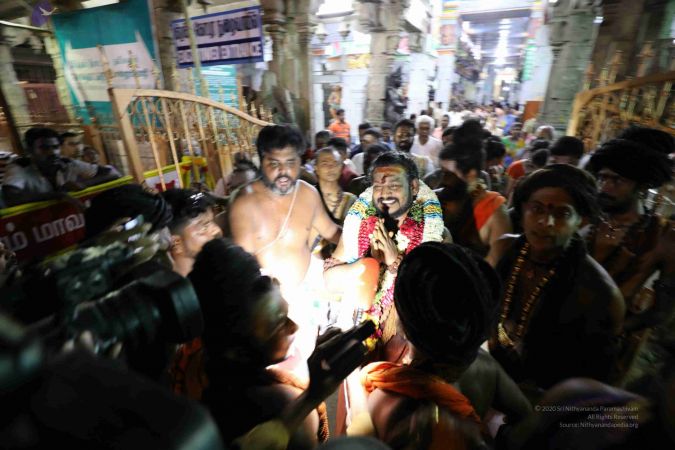 File:20180428_Photo_100_1R5cyxeEwNju-ek482xY1ogL9njTAdXG4.jpg | Welcoming HDH Nithyananda Paramashivam with Poorna Kumba at Ramanatha Swamy Temple, Rameshswara, Tamil Nadu, India