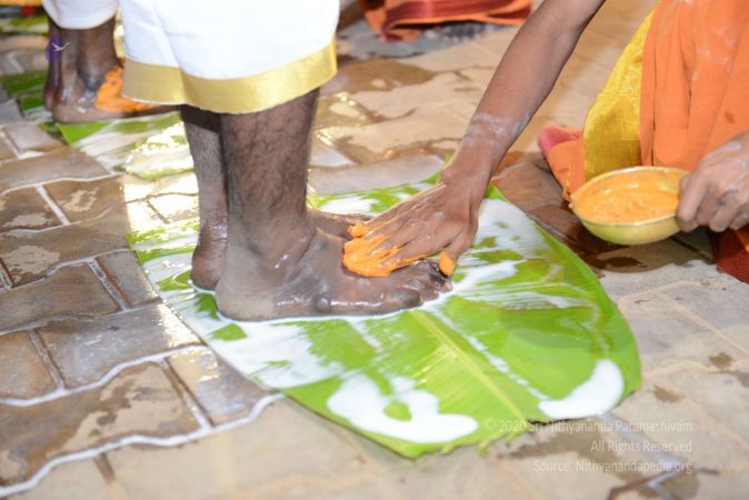 | + | File:20161222_Photo_263_12TS5ryipv4ROJHshe2Y1Oj5cNc8gRsYj.jpg | Sanyasis & Aadheenavasis of Nithyananda Peetham, Bengaluru Aadheenam welcome and honor Padayatris ritualistically with Pada Puja | ||