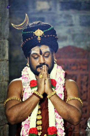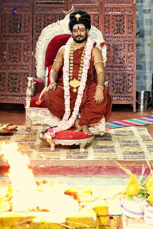 Beautiful Rudraksha hand jewellery adorning the Avatar's hands