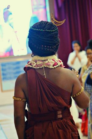 Sundara Vadam, beautiful rudraksha temple jewellery adorning the ears of the Avatar