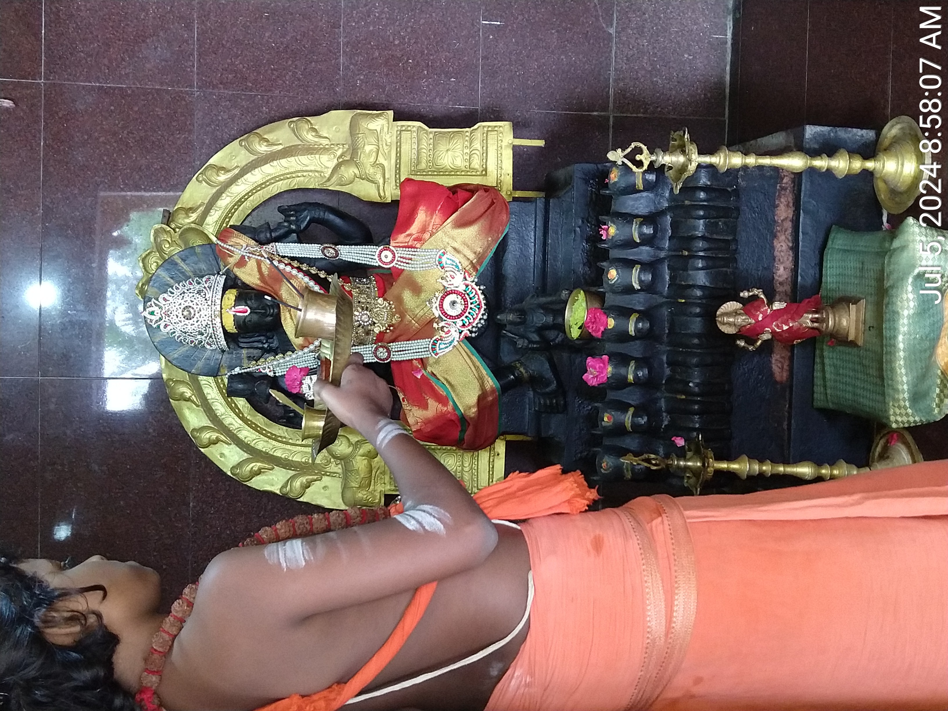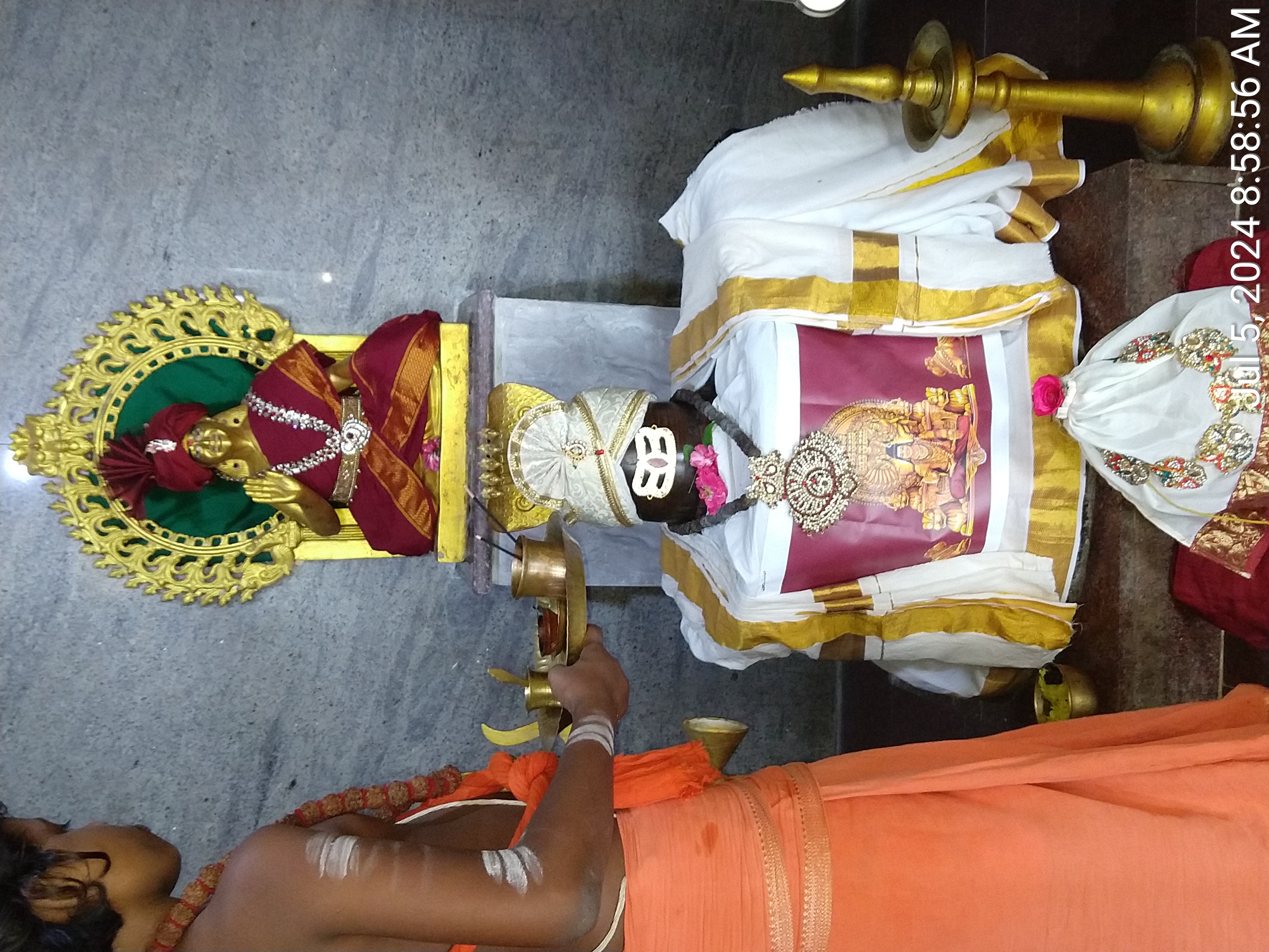 The day’s spiritual centerpiece was the rigorous and heartfelt conduct of the '''Paliyorai Seva''', a crucial Hindu ritual performed as part of the daily '''Nithyotsavam''' dedicated to the presiding Deities at Sripuram Sarvjanapeeta, Hyderabad. This sacred practice, performed in accordance with authentic Hindu traditions revived by THE SPH, signifies honoring the divine presence and ensuring the continuous alignment of the temple with the highest consciousness. The ritual prepares the Deities for their rest, symbolizing the cyclical nature of creation and ensuring the sanctity of the spiritual space remains vibrant for the next day's divine worship.
