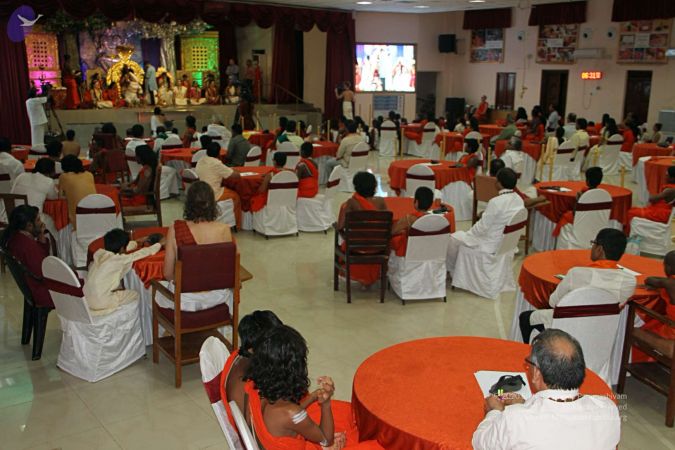 I welcome all of you with My love and respects. I welcome many distinguished, enlightened citizens of the society, who are here today, from all walks of life, sitting with us in Bengaluru Aadheenam and all over the world, through 2-way Video Conferencing in all our Aadheenams. Long list of all the Aadheenams, attending the program now in 2-way Video Conferencing - Los Angeles Aadheenam, Houston Aadheenam, a long list. I welcome all of you and all the Dignitaries, Guests, in all the Aadheenams present. And, today we have really long list of very important persons and guests here, amongst us. First, Sri Vedantamji – Founder and Chairman of Vishwa Hindu Parishad and Swami Govinda Ramanujacharya – Head of the Ramanuja Samrajya Sabha and Mr. Prasad – State President of BJP. Actually the dignitaries are such large number, originally I wanted Me to sit there, so the whole hall becomes a stage. Because the number of dignitaries can’t be accommodated…..the stage is too small. Originally I planned, let Me also sit with them, the whole hall become stage, but if I sit there, then we will not be able to conduct the Satsang, because the whole 2-way Video Conferencing setup, the technical set up is available here. That’s the reason I am here. So I sincerely apologise for all the Dignitaries, that you are all there and I am here, because it is just the technical reason, no other reason and.. Sri Mr Prasad - State President of BJP is here and Lakshmi Narayana Gowda - Chairman of Karnataka Rajya Raitha Sanghais here and Dr. Raju – Research Director of NIMHANS is here and Mallikarjun – Principal of BMS Engineering College is here, Sri Manjunath – Leader of Bajrang Dal is here, Jayachandra Reddy – Secretary of Telugu Vigyana Samitiis hereand G K Ganapati Reddy – Chairman and Managing Director of Stay Fit Health Fitness is here and Meena Das Narayan – Journalist, Artist, she is here and Dr Banu – Neurosurgeon….yes, Sri Raghu – Entrepreneur and there is a long list….Shivanand Sahai – a Industrialist, welcome…..