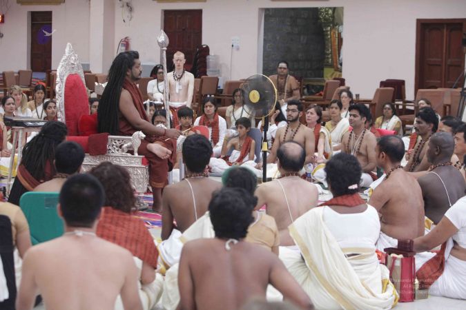 I welcome all of you with My love and respects. I welcome all the Sarvajna Peetha Yajamans, Nithya Satsangis, Sri Mahants, Mahants, everyone with My love and respects.