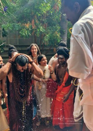 Today also celebrated the 10th day of Chithirai Brahmotsavam, Meenakshi Thirukalyanam, celebrating Pradosham in sanghas around the world and on this day.