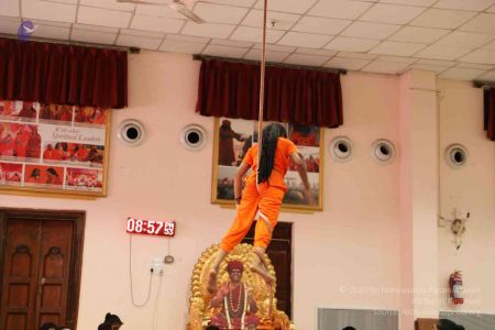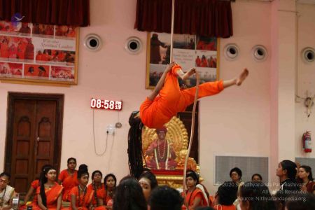 Balasants of Nithyananda Gurukul today hosted and delivered an enthralling webinar showcasing the highlights of Nithyananda Gurukul, a revolutionary Vedic school in Nithyananda Peetham, Bengaluru Aadheenam run by Paramahamsa Nithyananda Himself. The scions of the Avatar Himself, started with a demonstration of Nithyananda Yoga which is practiced daily at the Gurukul. The Balasants who are such adepts at Shivastambha Yoga (pole yoga) and Kundalini Rajju Yoga (rope yoga), that they demonstrated the feat while manifesting the power of the Third Eye, by being blindfolded and using the Shakti of the Third Eye to successfully perform the Asanas on top of the rope and pole. Next was a demonstration of the various Shaktis (superhuman powers) described by Sadashiva in the Shaiva Agamas, like the powers of Anima, Laghima, and Mahima. The Balasants successfully increased and reduced the height and weight of objects, and also changed pulse rates of people. The webinar concluded with a session of Akashic Readings, as a Balasant of Nithyananda Gurukul accessed the cosmic archives and answered questions about education and about the Gurukul. Paramahamsa Nithyananda Himself manifested during the Akashic Readings and the answers were exactly as Lord Kalabhairava revealed.
