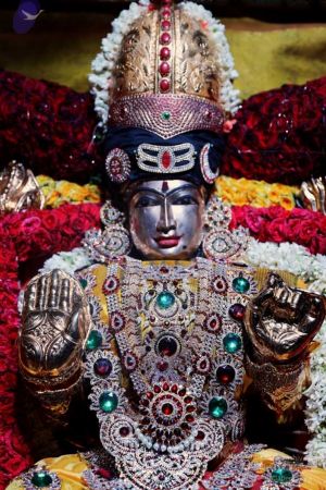 Nithyananda Purnima Brahmotsavam celebration special alankars (decoration) done for HDH Nithyananda Paramashivam, Sundareshwara, and Meenakshi Devi