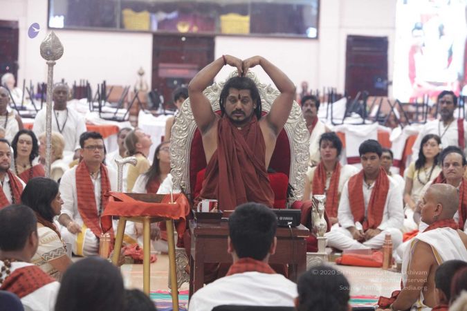 HDH Nithyananda Paramashivam sitting on Simhasana