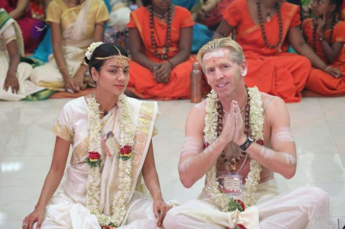 Blissed out recommitting themselves to marriage in the Divine presence of Swamiji