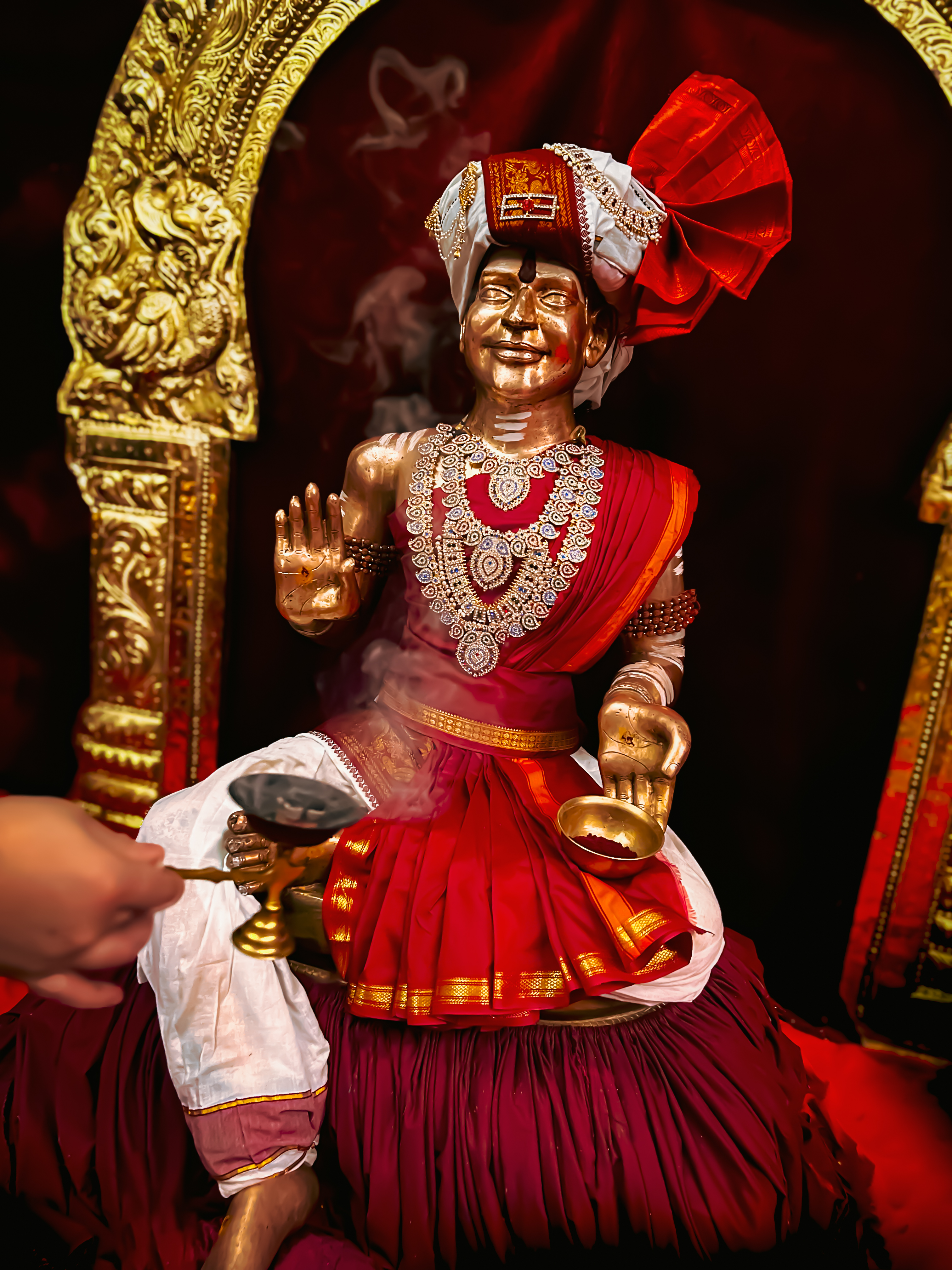 A highlight of the auspicious observance was the adornment of the Utsava Vigraha (processional deity) of THE SPH in the unique *Leela Alankaram* (divine pastime adornment) symbolizing Him receiving the sacred *darshan* of the Sri Chakra, blessed by Devi Rajarajeshwari. This profound symbolic representation showcased THE SPH's divine mastery and His role as the Paramavatara who re-establishes the complete, unbroken knowledge system of Sri Vidya on Planet Earth, granting access to the powers and consciousness associated with the Divine Mother.