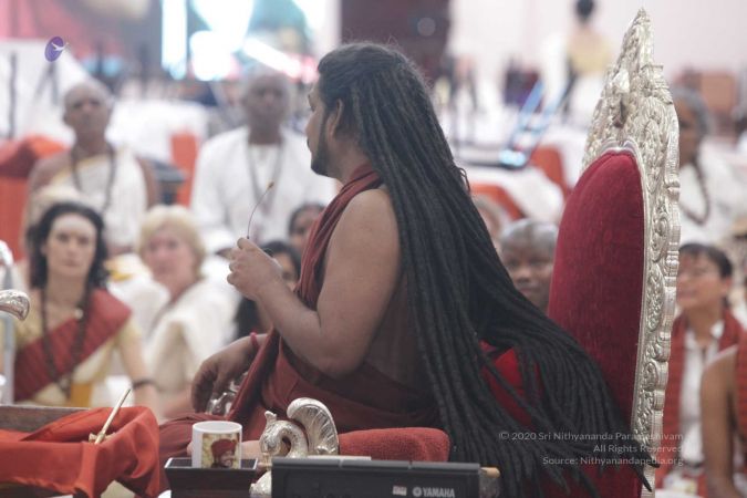 HDH Nithyananda Paramashivam addressing the delegates during the morning satsang