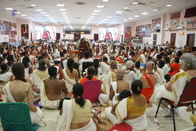 Balasanths and delegates enjoying the presence of HDH Nithyananda Paramashivam during the morning satsang