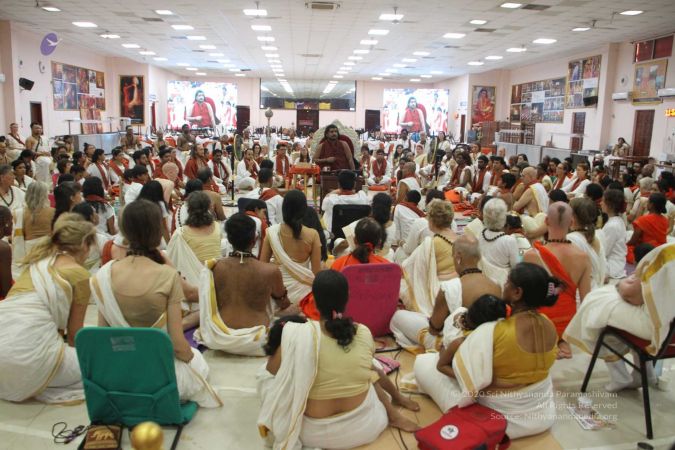 HDH Nithyananda Paramashivam addressing the delegates during the morning satsang