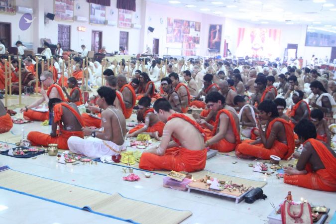 Adheenavasis and delegates of Inner Awakening Convention offering their gratitude at the Master's Feet- Pratyaksha Pada Pooja