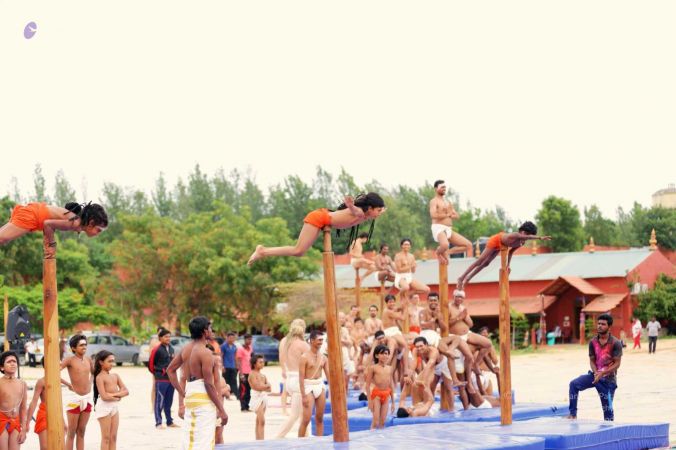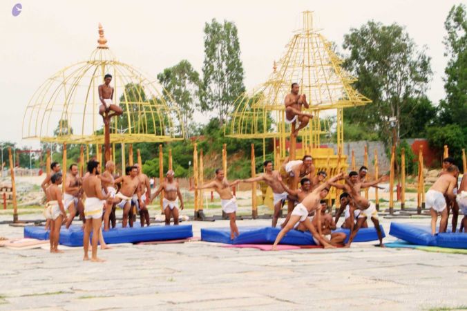 Glimpses of Nithyananda yoga - Shivastambha (mallakhamba) demonstration