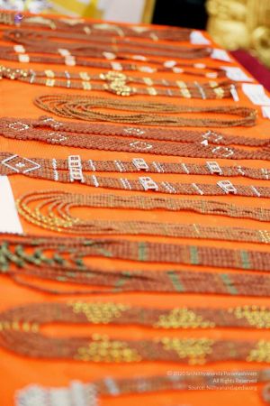 Display of beautiful rudraksha jewels used by HDH Nithyananda Paramashivam for delegates to acquire as symbol of His blessing