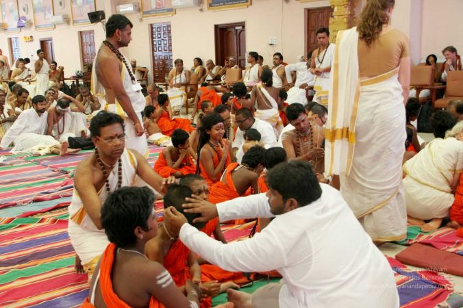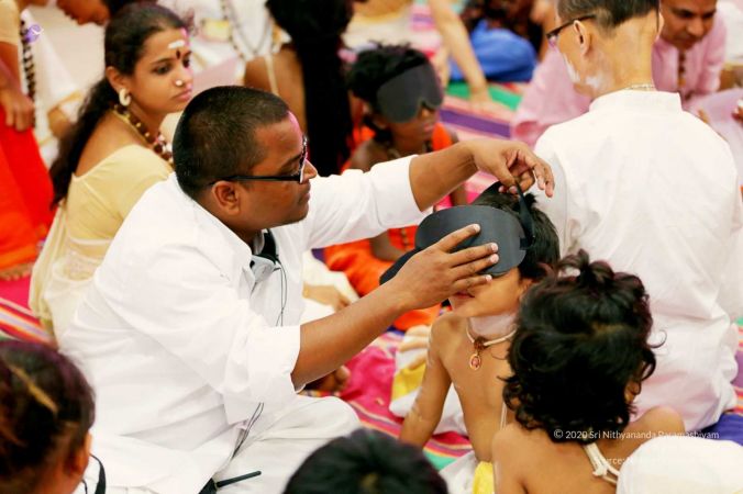 Initiation, the disciple gets initiated into the sacred mantras: Gayathri Mantra (Mantra for awakening your higher intelligence and awakening the remaining 9 strands of DNA in your body) and Shiva Mula Mantra (Mantra for experiencing the Paramashivoham - I am Paramashiva)