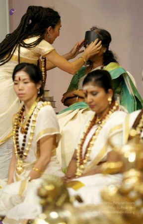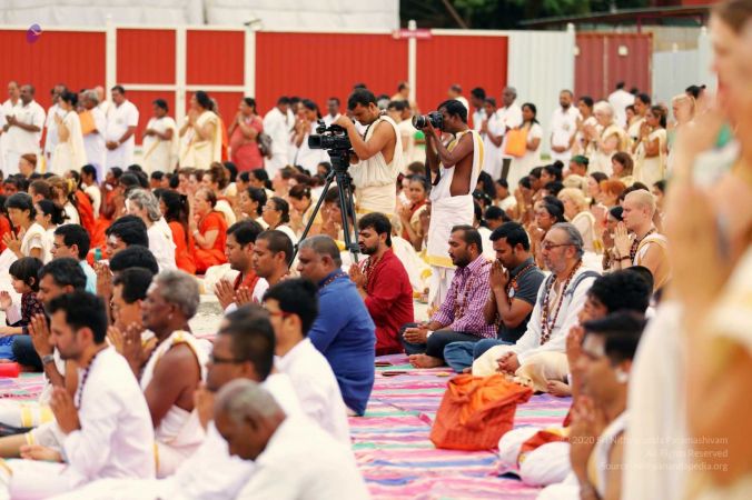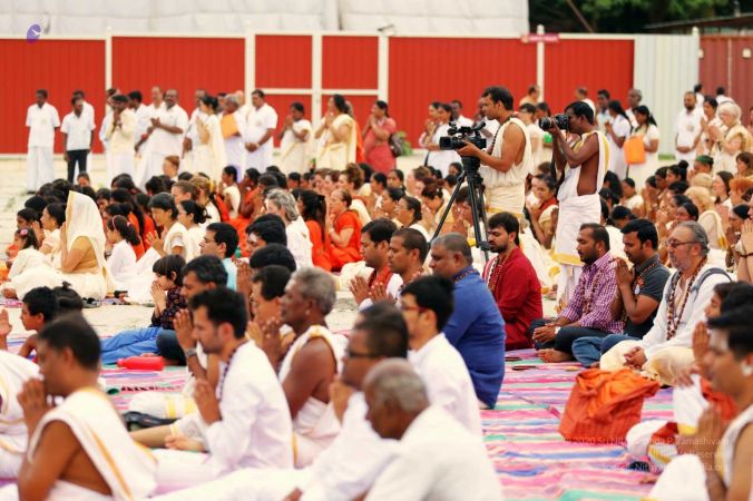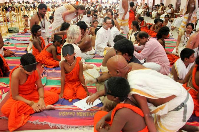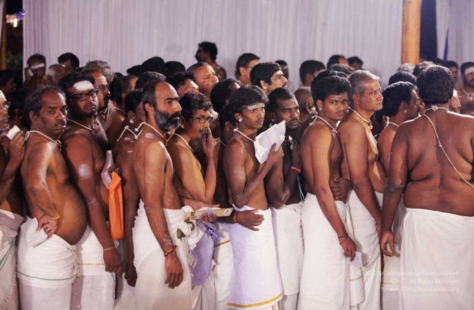 Delegates offering Guru mudi as gratitude at the Lotus Feet of HDH Nithyananda Paramashivam