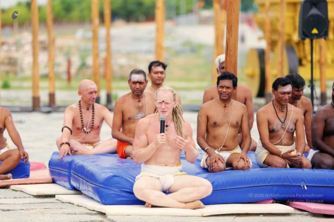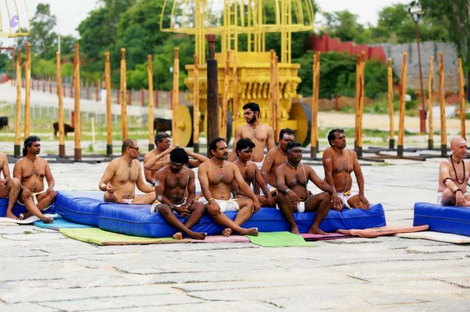 Yogacharya speaking about Nithyananda Yoga - Shivastambha (mallakhamba)