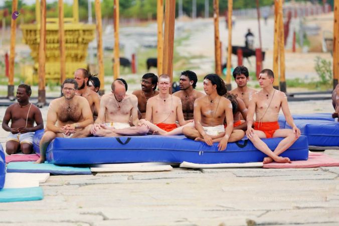 Awaiting next turn for demonstration of Nithyananda Yoga