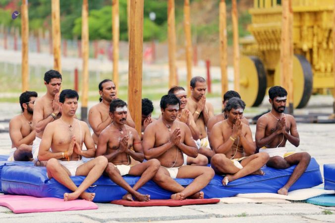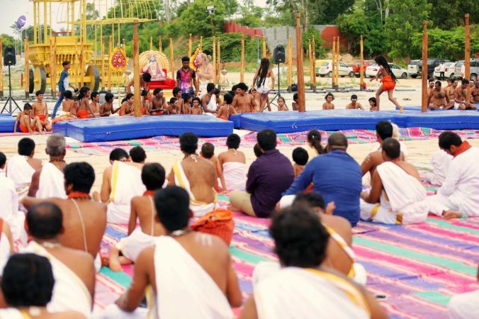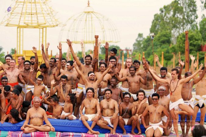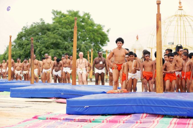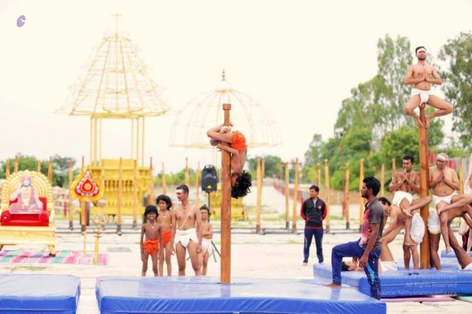 Nithyananda Yoga Shivastambha (mallakhamba) yoga asanas demonstration by balasants, aadheenavasis and delegates
