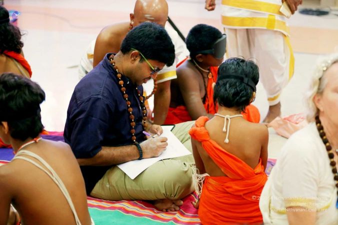 HDH Paramahamsa Nithyananda applying yagna raksha - black gyananjana as ritual