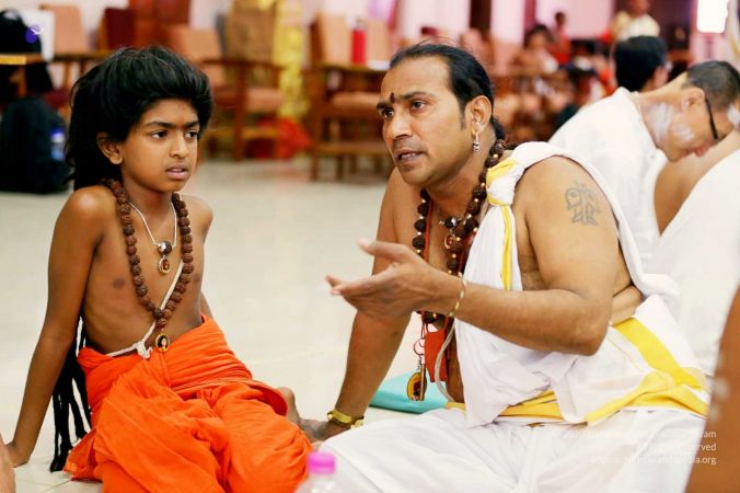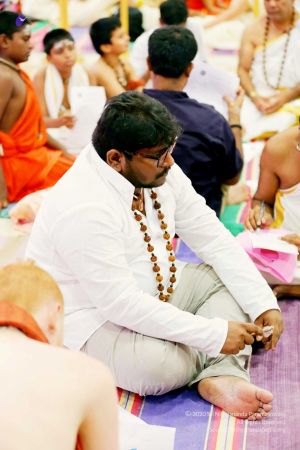 Sacred kalaasha water is sprinkled after completion of Vishesha deeksha yagna