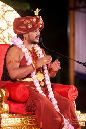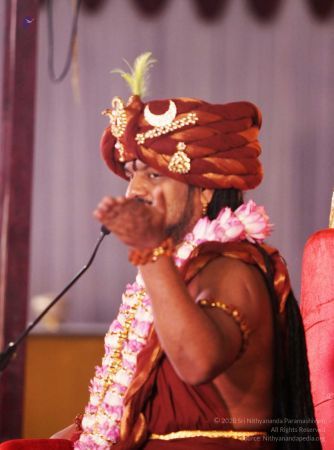 உலகம் முழுவதிலிருமிருந்து பெங்களுரு ஆதீனத்தில் திரண்டிருக்கும் அன்பர்களயைும், இருந்த இடத்திலேயே ஷாலினி தொலைக்காட்சி, தீபம் தொலைக்காட்ச, நித்யானந்த தொலைக்காட்சி மூலமாக கண்டகளித்துக் கொண்டிருக்கும் அன்பர்களையும் வணங்கி வரவேற்கின்றேன்.
