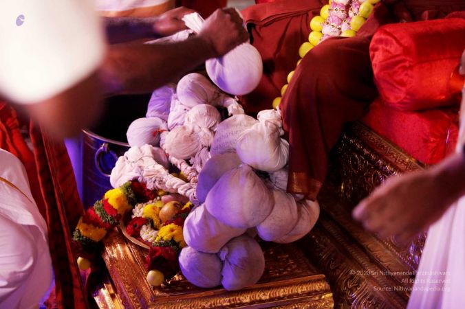 HDH Paramahamsa Nithyananda accepts the pooja prasadam of Shiva deeksha and Kalpataru