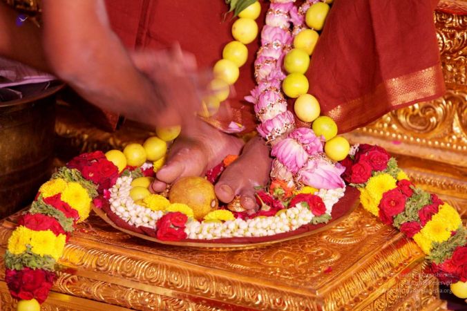 Delegates expressing their gratitude to Guru pada - pada means sacred feet in Sanskrit - ritual to express our thanks to a revered spiritual Guru