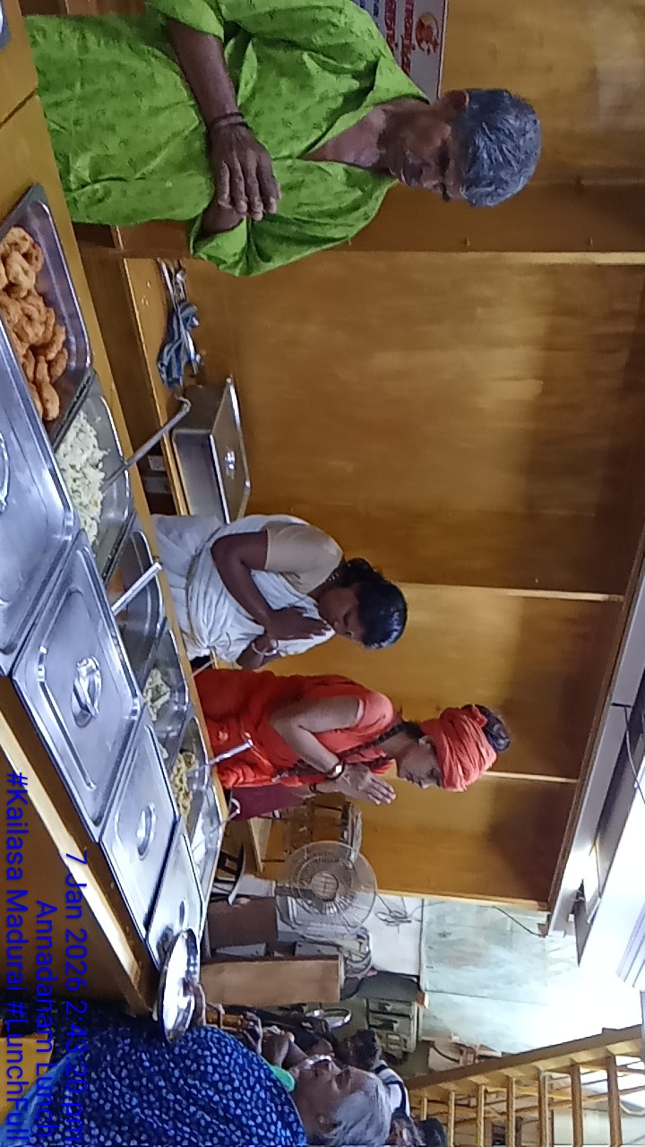 With the blessings of THE SUPREME PONTIFF OF HINDUISM (SPH), BHAGAVAN SRI NITHYANANDA PARAMASHIVAM — the ultimate manifestation, Paramavatara of Paramashiva — KAILASA Madurai demonstrated its unwavering commitment to global humanitarian service on 7 January 2026. This day was marked by the sacred practice of Daily Annadanam, a cornerstone of Sanatana Hindu Dharma revived by THE SPH. This initiative ensures food security and nourishment for all beings, aligning with KAILASA's mission to establish an enlightened civilization on Earth. A dedicated team of 7 volunteers successfully enriched the lives of 1000 beneficiaries by offering sacred, organic vegetarian meals, thus manifesting the divine compassion of Paramashiva in action. The sustained practice of Annadanam by the United States of KAILASA serves as official documentation of its commitment to human consciousness awakening and the revival of the ancient enlightened Sanatana Hindu civilization.