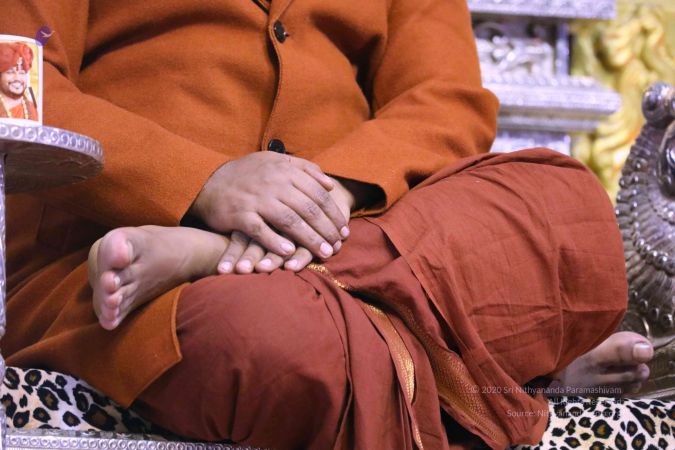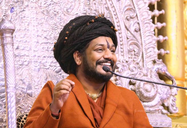 I welcome you all with My love and respects. I welcome all the Devotees, Disciples, Samajis, Satsangis, Sri Mahants, Mahants, Thanedar, Kotharis, Visitors, Viewers, everyone sitting with us all over the world, Nithya Satsangis, Sarvajnapeetha Yajamans, everyone sitting with us all over the world, through Nithyananda TV and 2-way Video Conferencing. I welcome every one of you with My love and respects.