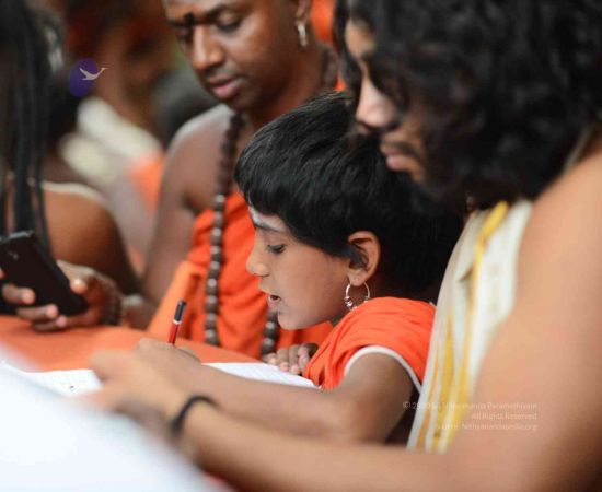Supreme Pontiff HDH Nithyananda Paramashivam is initiating disciples into the Science of Manifesting the State, Space, Being, and Powers of Paramashiva. These Powers or Shaktis revealed directly by Him to the world and manifested by His disciples as “Nithyananda Yogis”, are directly from the Agamas, the original words of Paramashiva. Today the disciples were initiated into the shakti (power) of reading books through the third eye.
