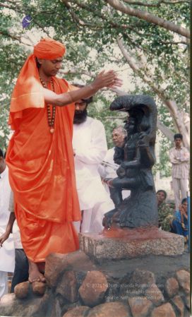 The SPH has always reiterated that His entire life is the essence of the Guru-Shishya parampara, the Guru-Disciple tradition, which is the backbone of Hinduism and key system through which the Science of enlightenment is manifested as an enlightened civilization. All the great enlightened Hindu incarnations, masters and disciples, belong to this enlightening Order. It is therefore of huge purpose and context that the SPH consecrated Dakṣiṇāmūrti in the spiritual headquarters of the mission soon after inauguration of Adi KAILASA.