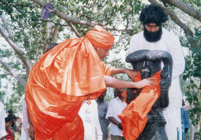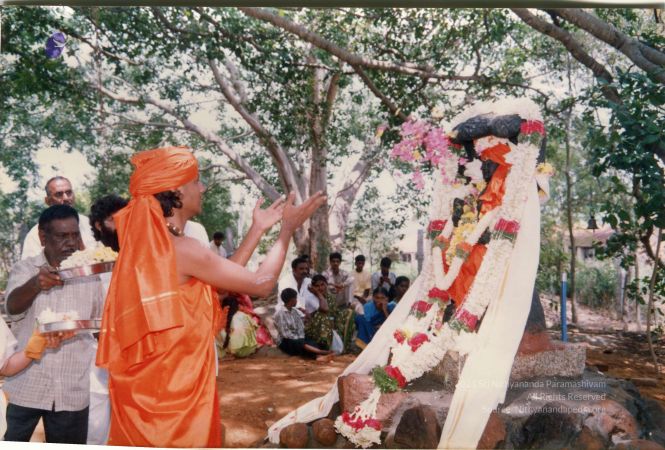 1) In the wee hours of the morning, SPH consecrated (through the method of prana pratishtha) the first ever Ādi Dakṣiṇāmūrti deity under the divine Banyan tree in Adi KAILASA - Nithyananda Peetham, spiritual headquarters of the global mission of KAILASA, in Bengaluru, South India. 2) He also inaugurated the first humble meditation hall ‘Ānanda Sabha’ in Adi KAILASA, opening the doors for international seekers to come, learn, receive initiation and get enlightened.