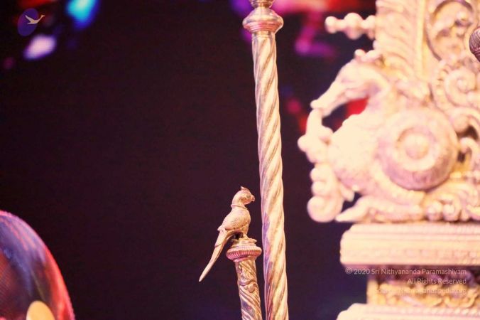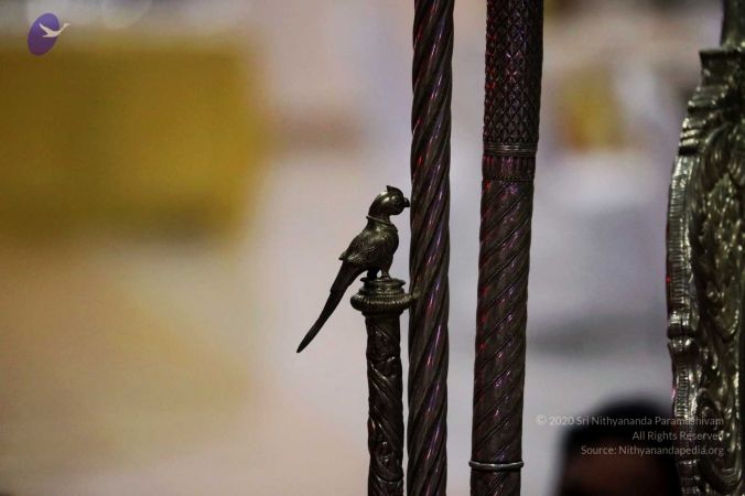 HDH Nithyananda Paramashivam Danda with parrot symbol of Meenakshi Devi's danda
