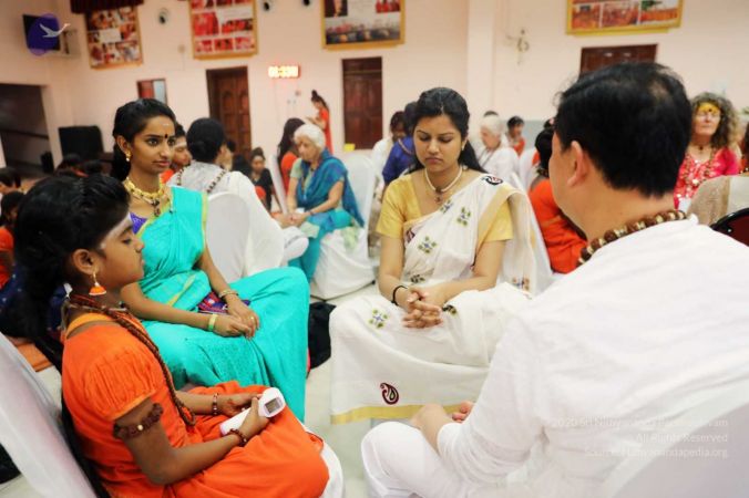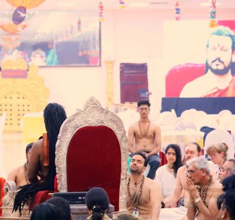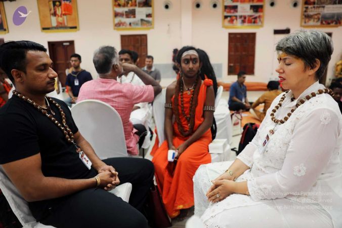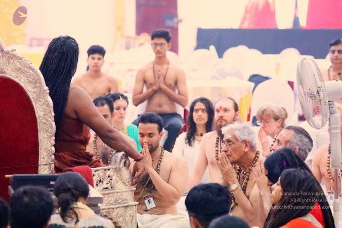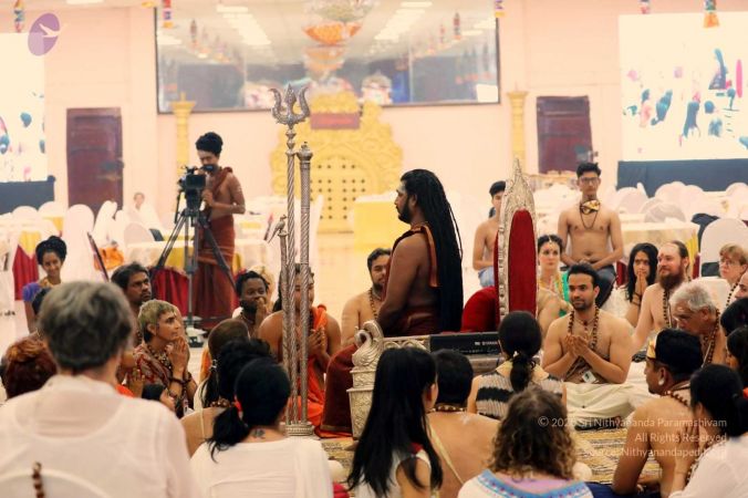 HDH Nithyananda Paramashivam initiated delegates by seating them in the shape of the Sri Chakra Mandala