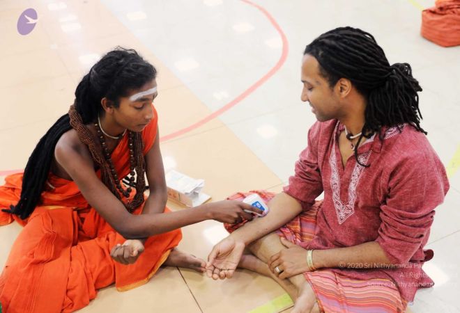 HDH Nithyananda Paramashivam ABHAYA MUDRA (blessings) to Mahasadashivoham delegate