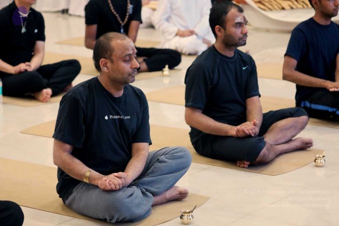 Mahasadashivoham delegates performing Nithyananda Yoga in the breathing space of HDH Nithyananda Paramashivam