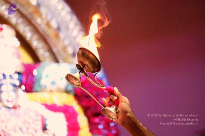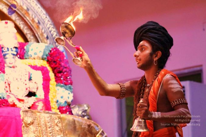 Balasant offering mangal aarti to HDH Nithyananda Paramashivam