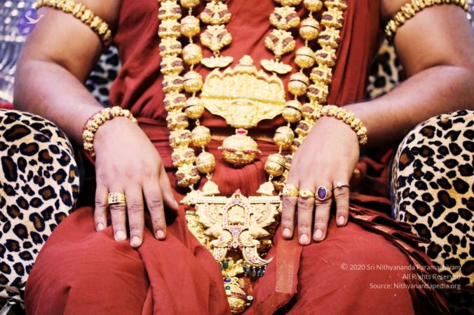 Beautifully adorned HDH Nithyananda Paramashivam with jewelry during ENERGY DARSHAN INITIATION