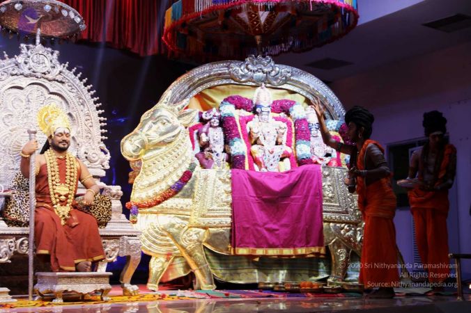 Nithyananda Purnima Brahmotsavam celebration - special alankars of HDH Nithyananda Paramashivam, Sundareshwara, and Meenakshi Devi